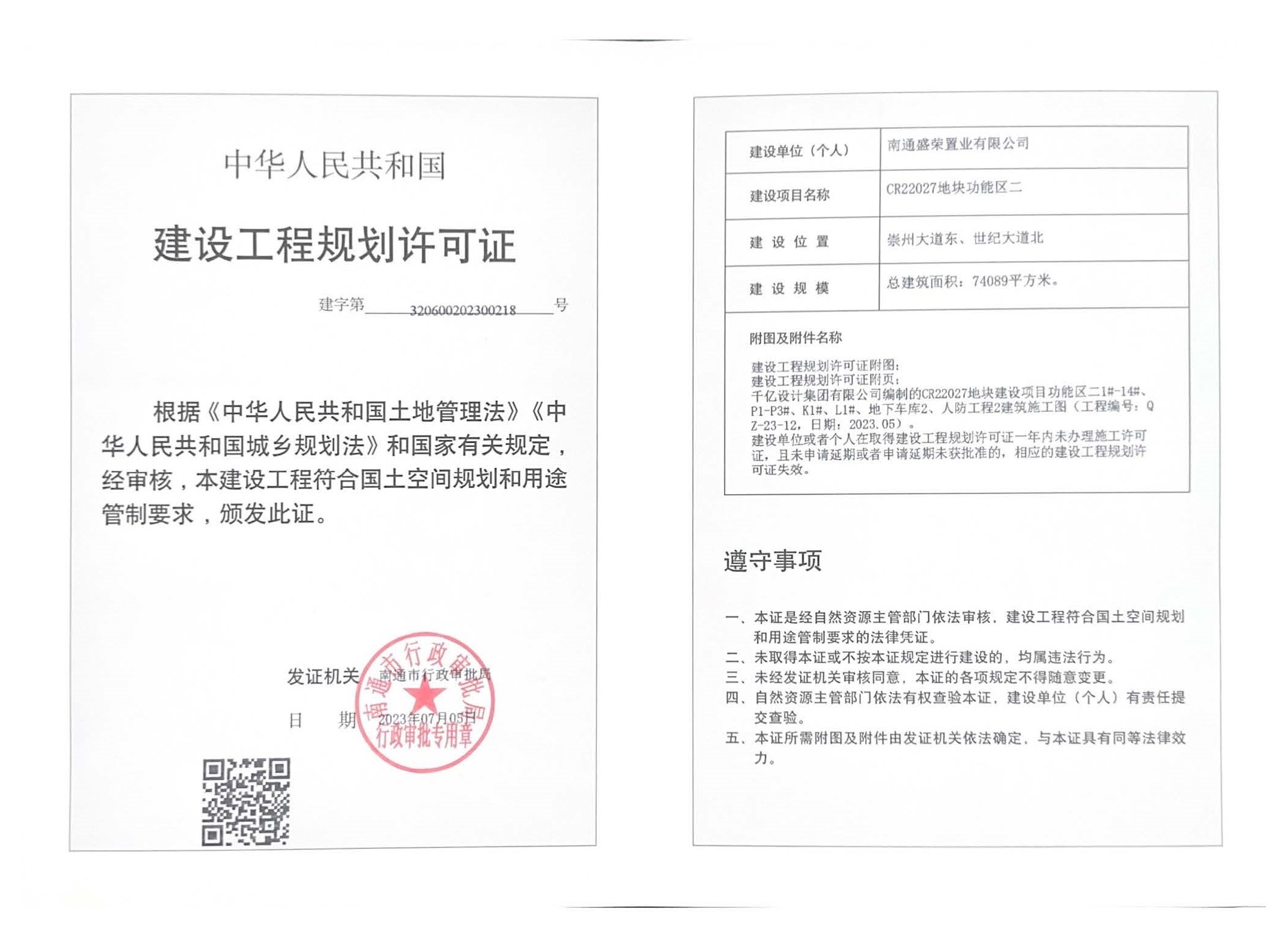 2023年7月5日,沿海集團盛和房產創新區CR22027地塊項目南區取得工程規劃許可證,意味著項目向正式開工邁進了一大步,為項目有序推進奠定了良好基礎。