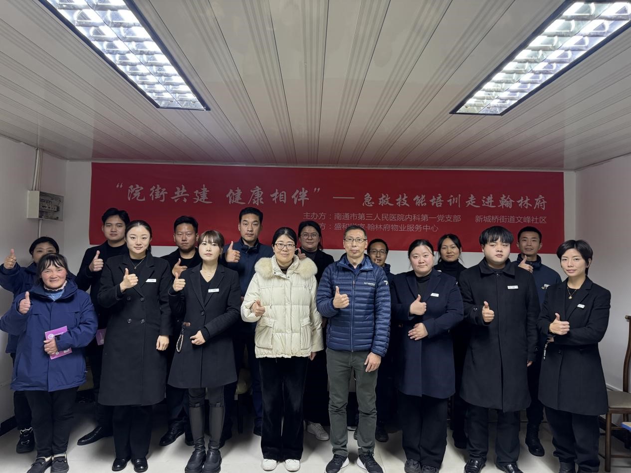 近日,在院街共建的積極推動下,由南通市第三人民醫院內科第一黨支部與新城橋街道文峰社區聯合主辦的急救技能培訓活動在翰林府盛大開展,盛和悅家積極組織物業人員全程參與其中。此次活動是構建社區安全防護網的重要舉措,為提升物業團隊應急救援水平提供了寶貴契機。